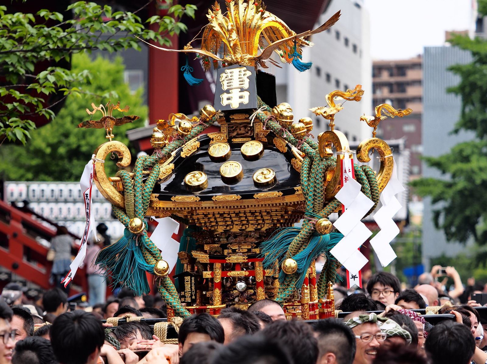 Lễ hội Sanja được tổ chức ở đền Asakusa vào những ngày cuối tuần (thông thường vào ba ngày thứ 6, thứ 7 và chủ nhật) của tuần thứ ba của tháng Năm. Ngày đầu tiên của lễ hội sẽ diễn ra cuộc diễu hành dài. Ngày tiếp theo là lễ rước 100 kiệu mikoshi của những người dân địa phương. Riêng ngày thứ 3 tổ chức rước 3 kiệu mikoshi lớn của đền thờ Asakusa.
