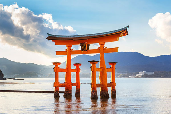 Địa danh này nằm trên đảo Miyajima ở Hiroshima, có lịch sử xây dựng cách đây 847 năm, cổng nổi này được coi là một trong những hình ảnh mang tính biểu tượng nhất của Nhật Bản. Cổng (Torii) nổi lên trên mặt đại dương khi thủy triều lên, còn khi thủy triều xuống, bạn có thể đi bộ tới cổng
