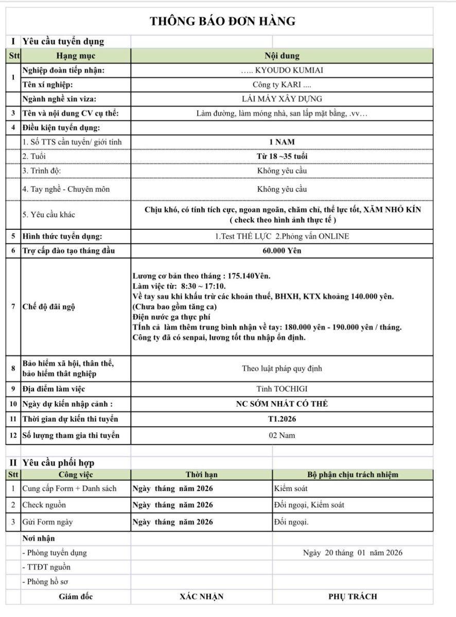 TUYỂN 1 NAM LÁI MÁY XÂY DỰNG
