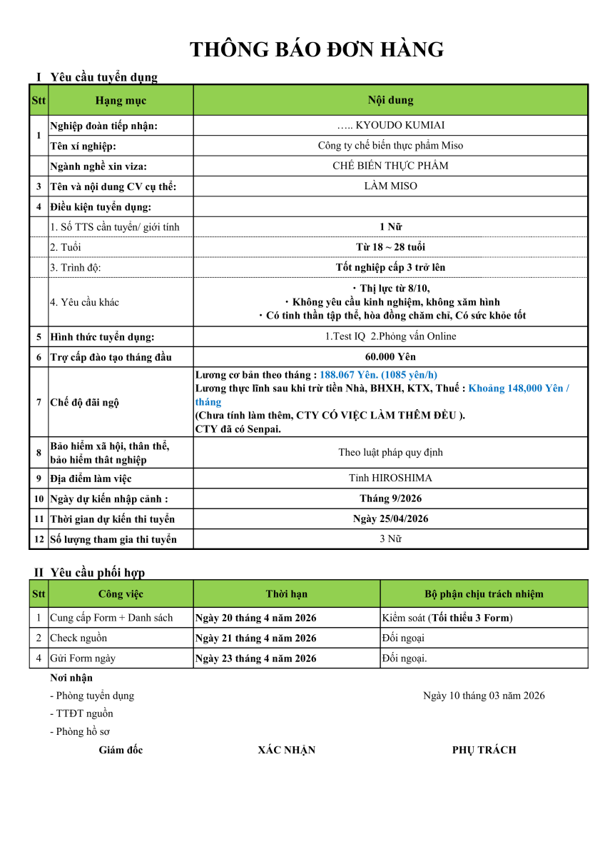 TUYỂN 1 NỮ LÀM MISO